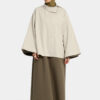 Our boxy trench coat is designed to wear over skirts, dresses, or pants.