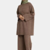 Our Lounge Set includes a wide-leg trouser and an oversized top, designed for comfort and ease.