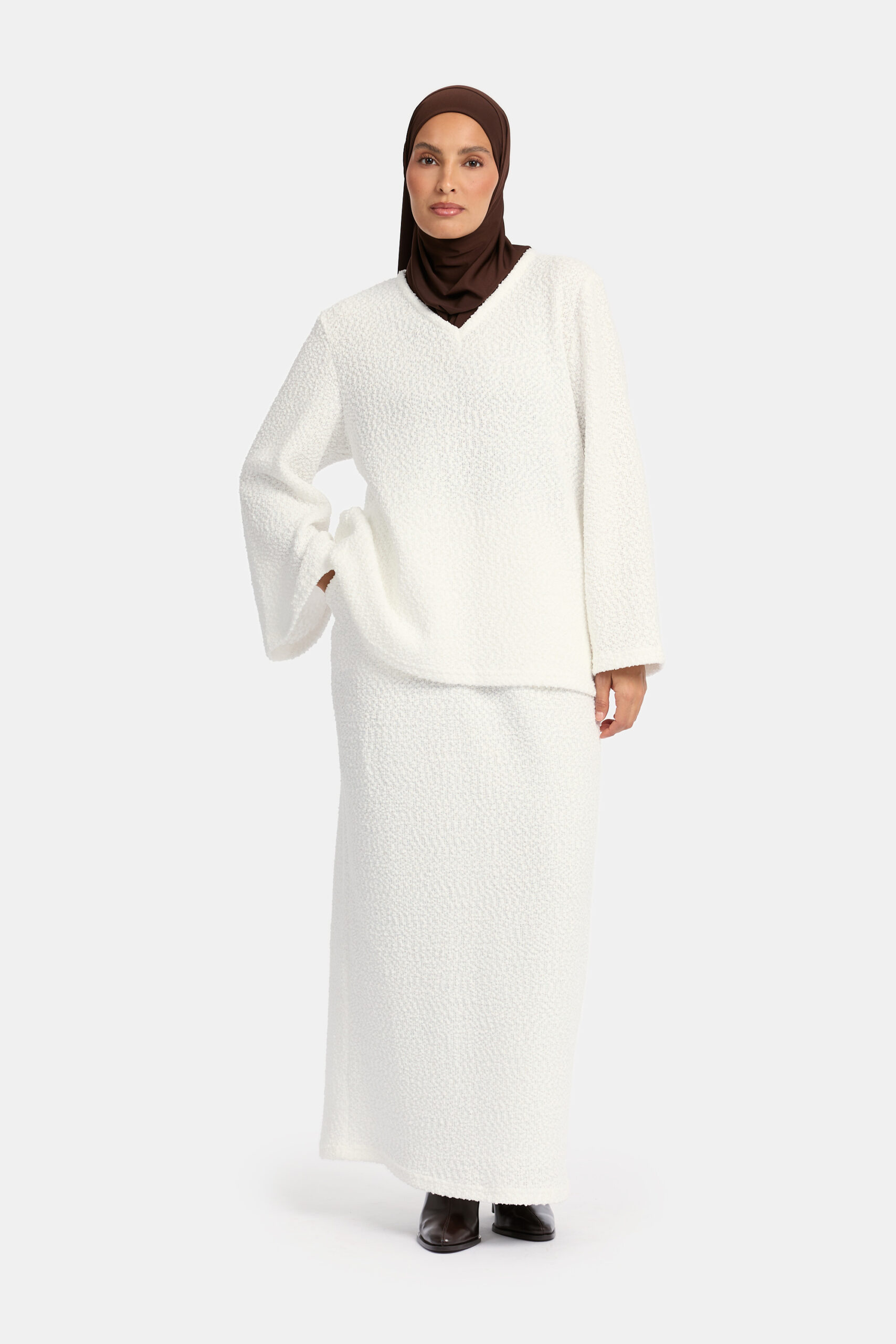 We’ve added a stylish skirt set to our teddy collection! Inspired by last year’s favorite teddy dress, this set is made from the same warm and cozy teddy fabric, perfect for the colder months.